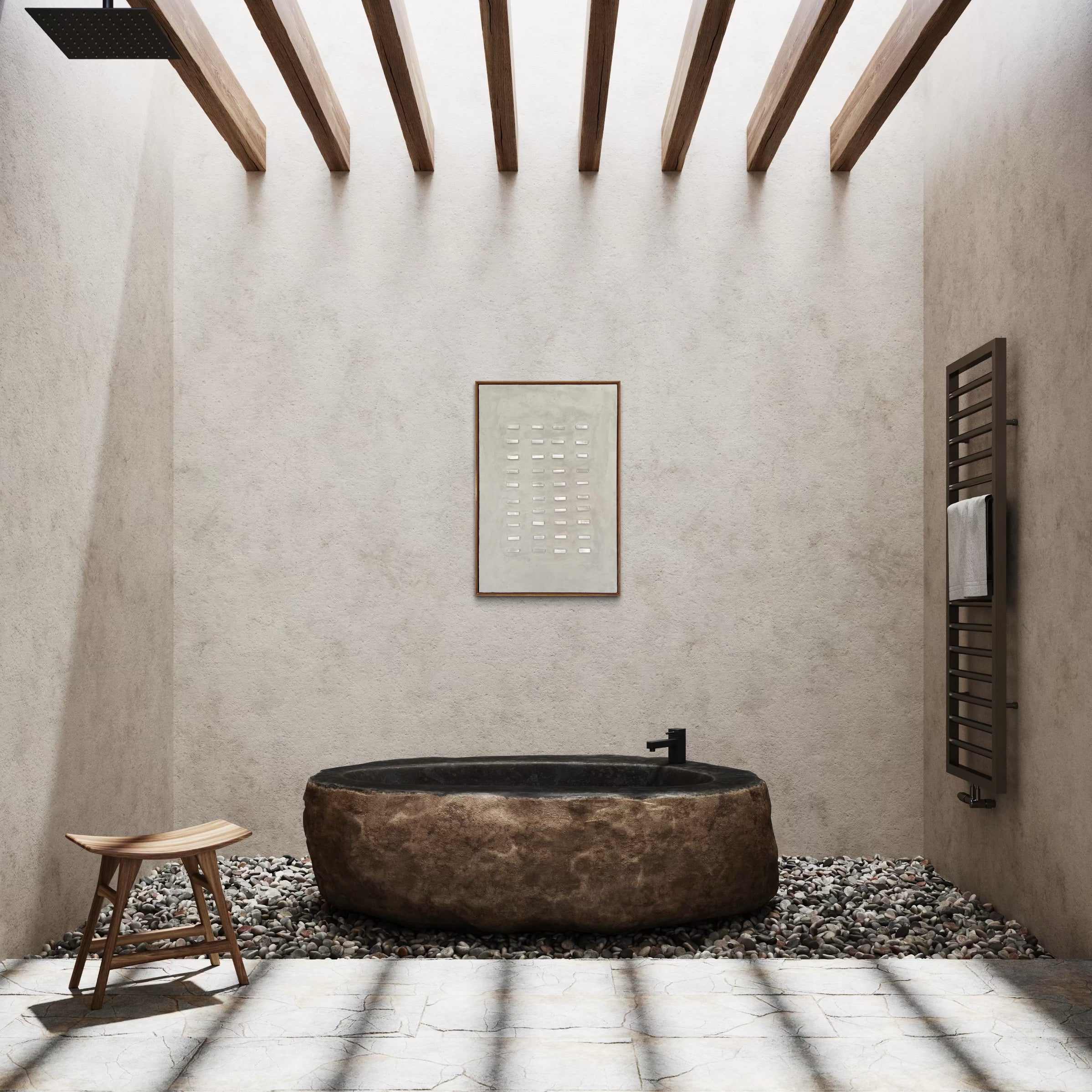 Her sculptural art invites a contemplative experience rooted in grounding earth materials and minimalist, zen-inspired design. By bringing the spiritual into the physical—and energy into form—her work encourages viewers to connect with their own light, truth, and the purifying clarity of nature.