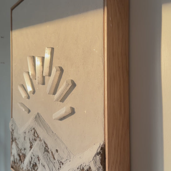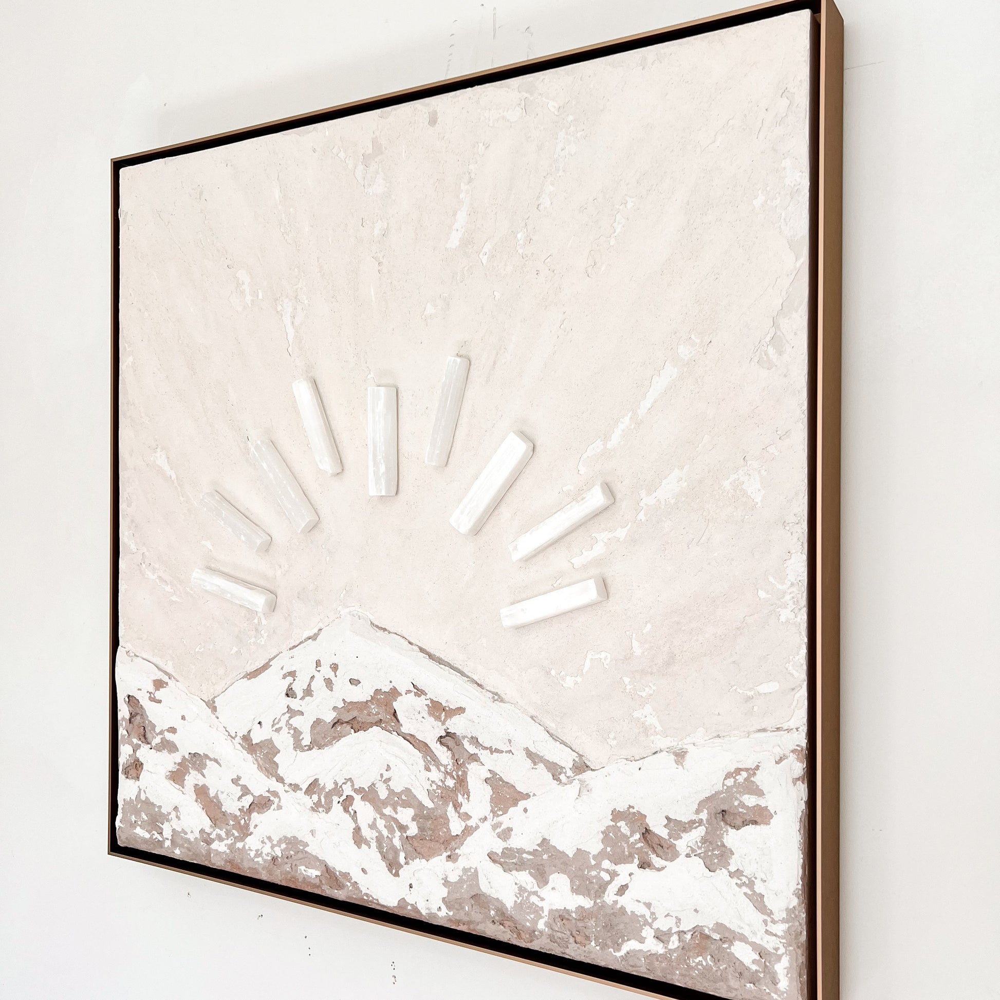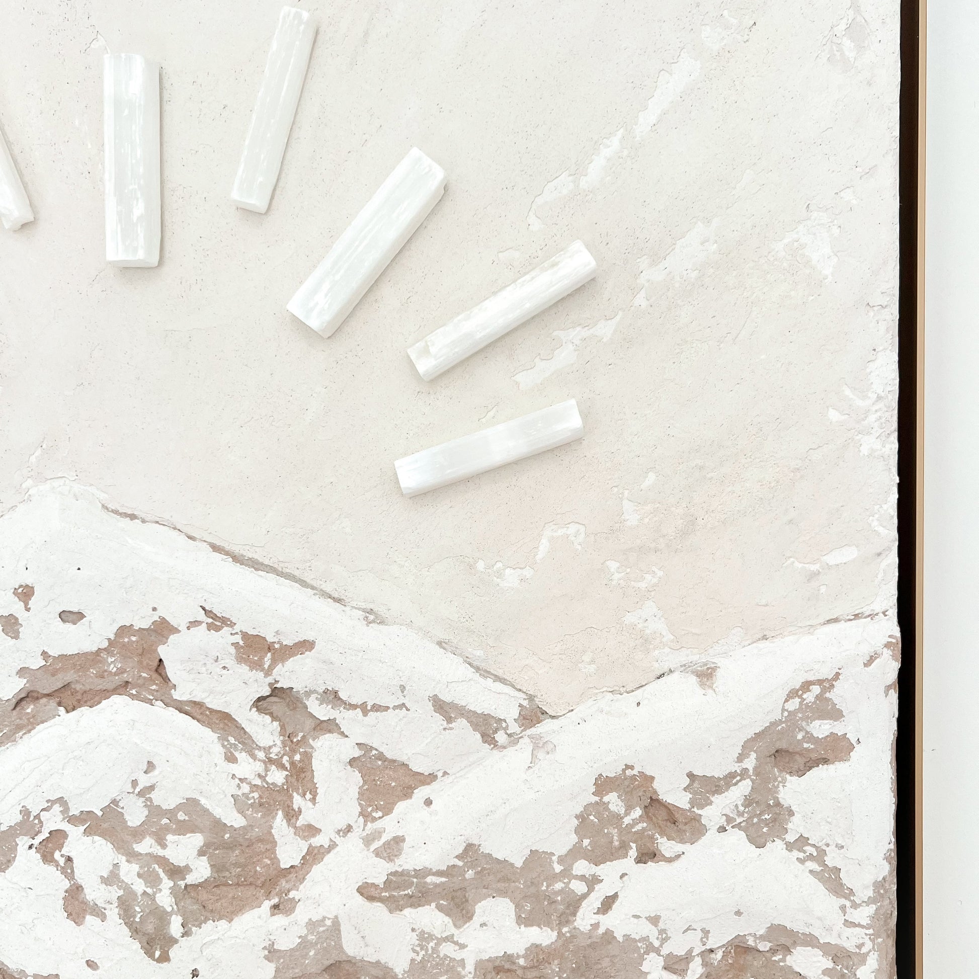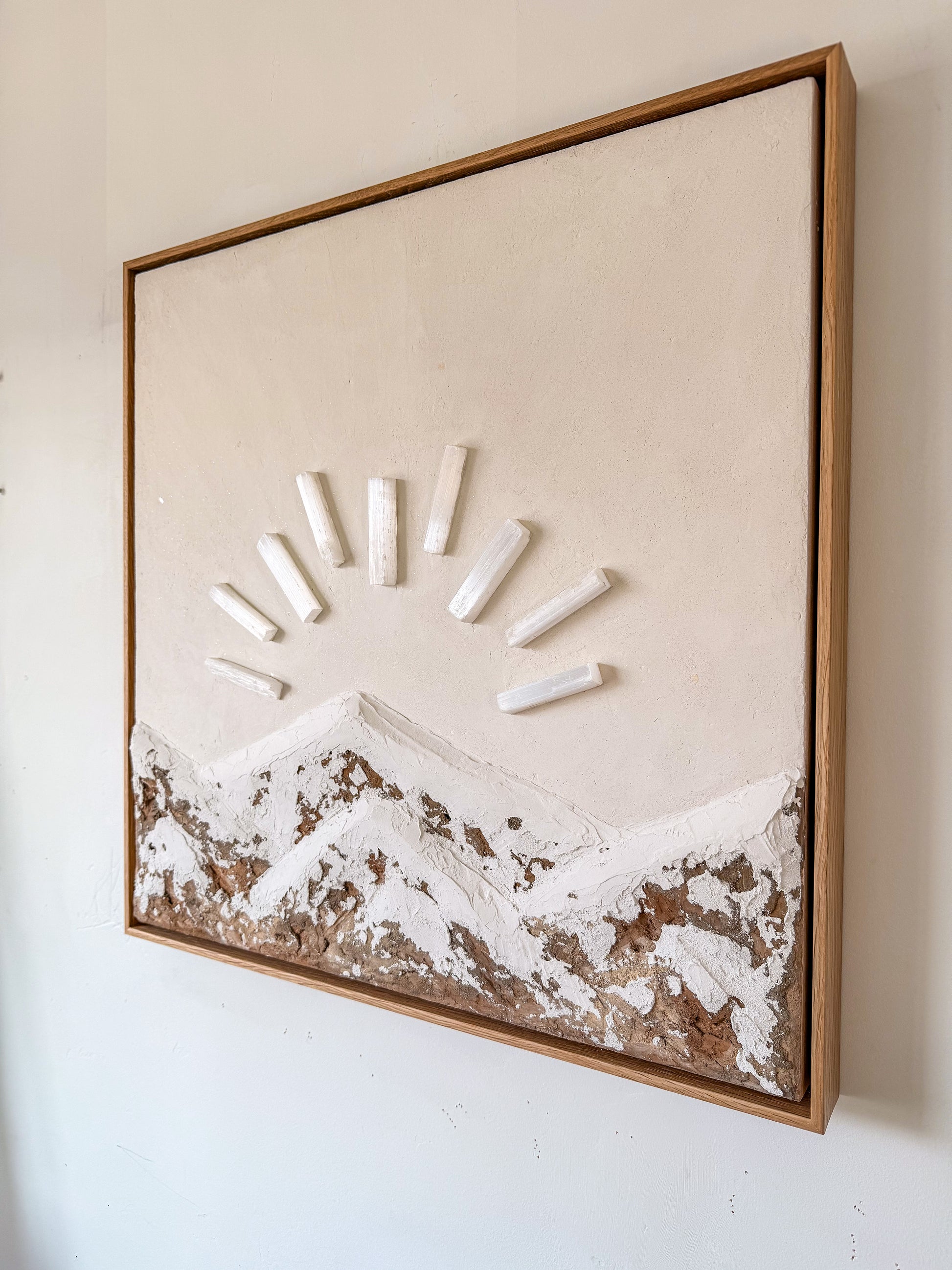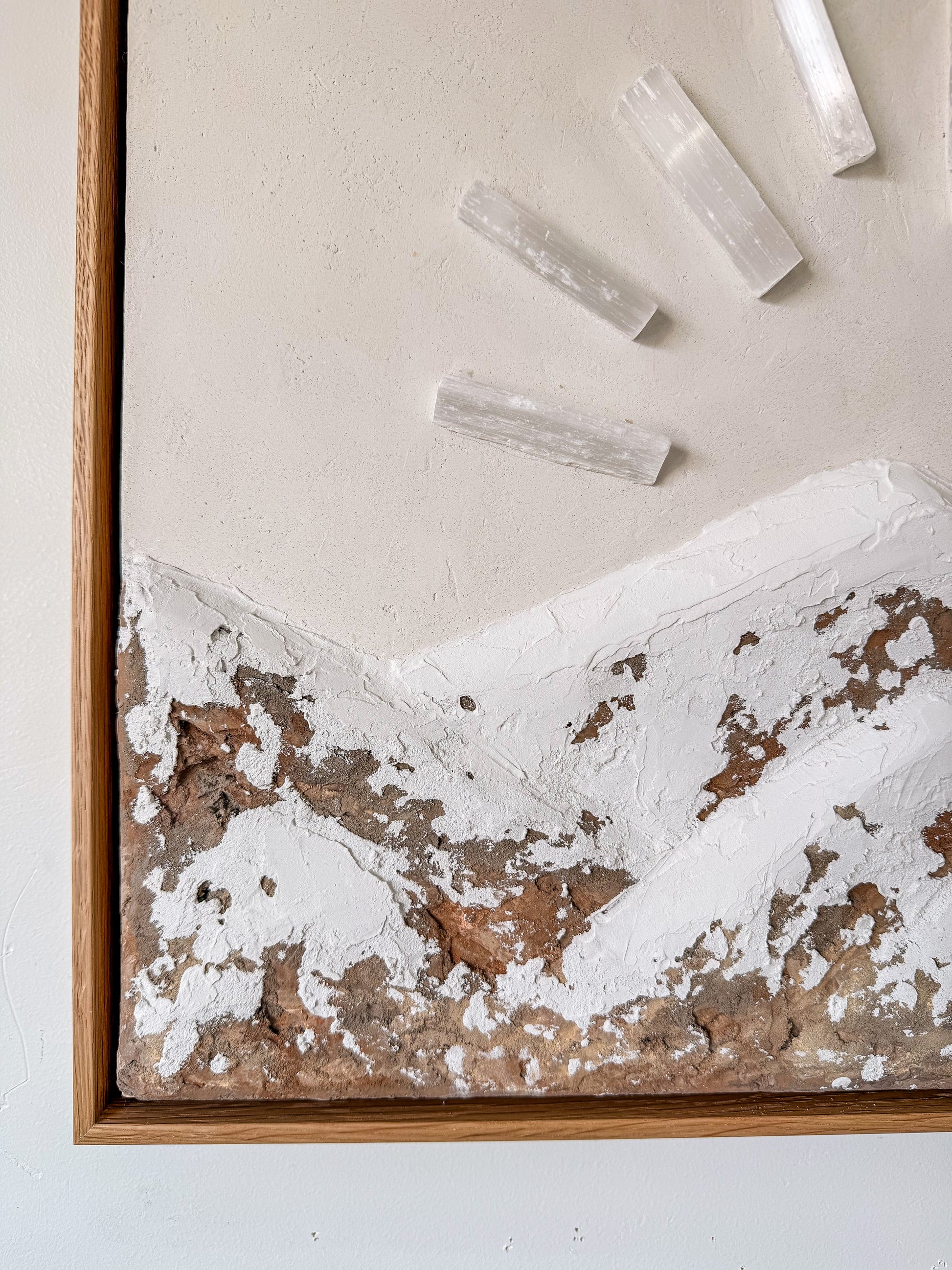 Original Contemporary 3D wall sculpture with selenite crystals.