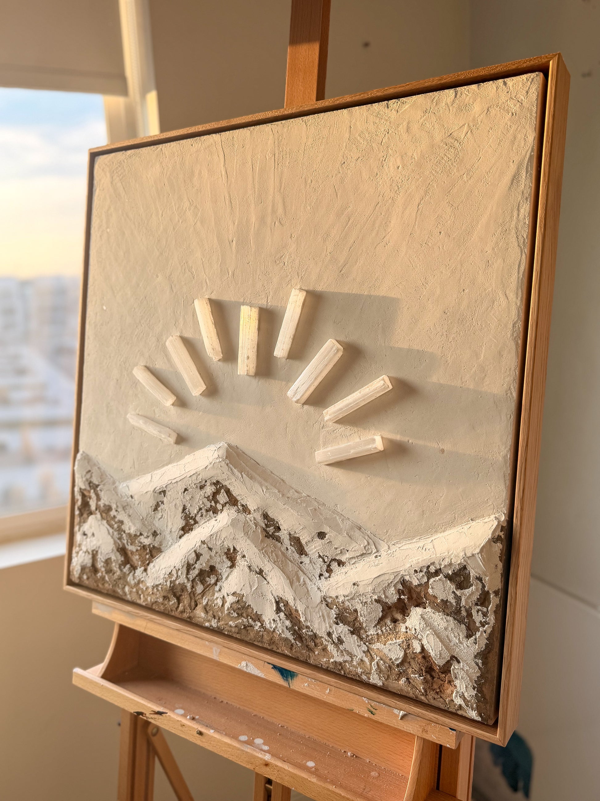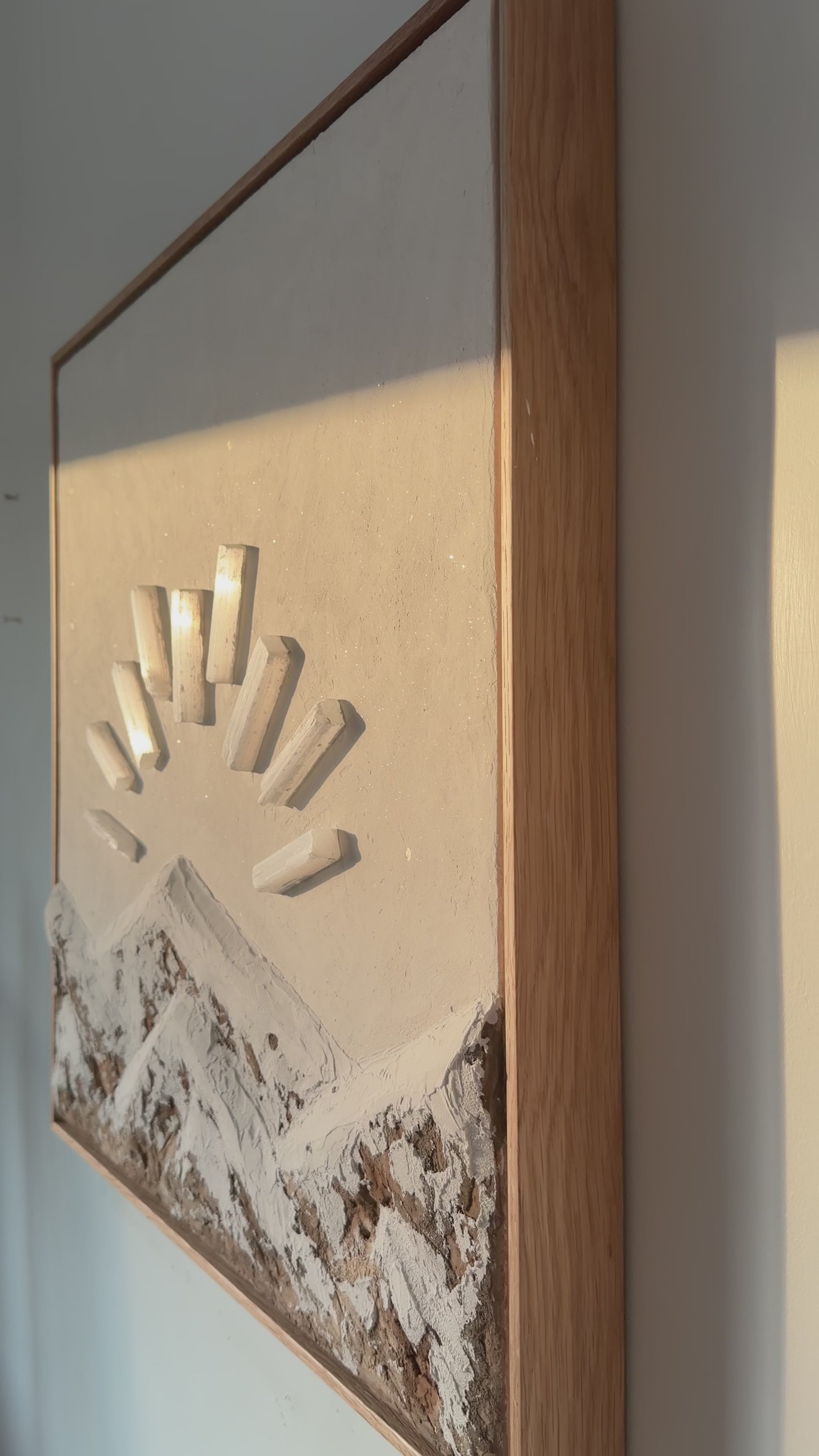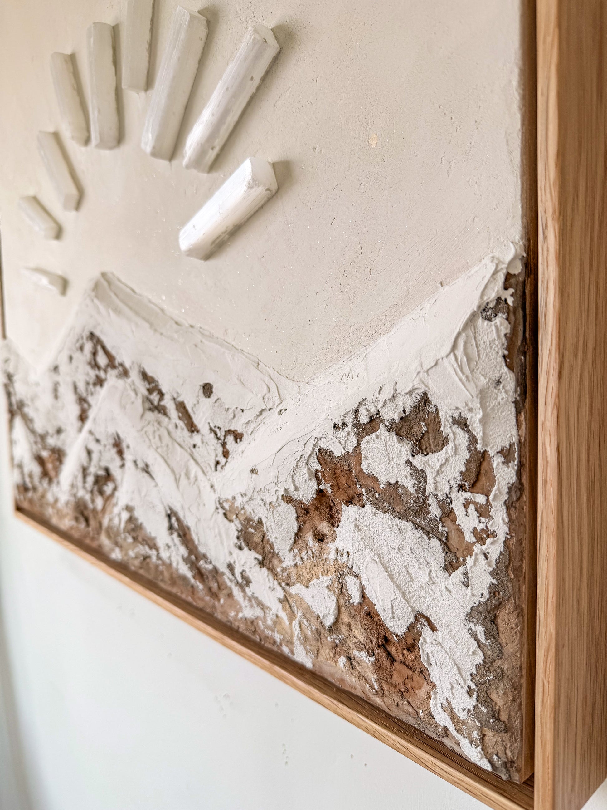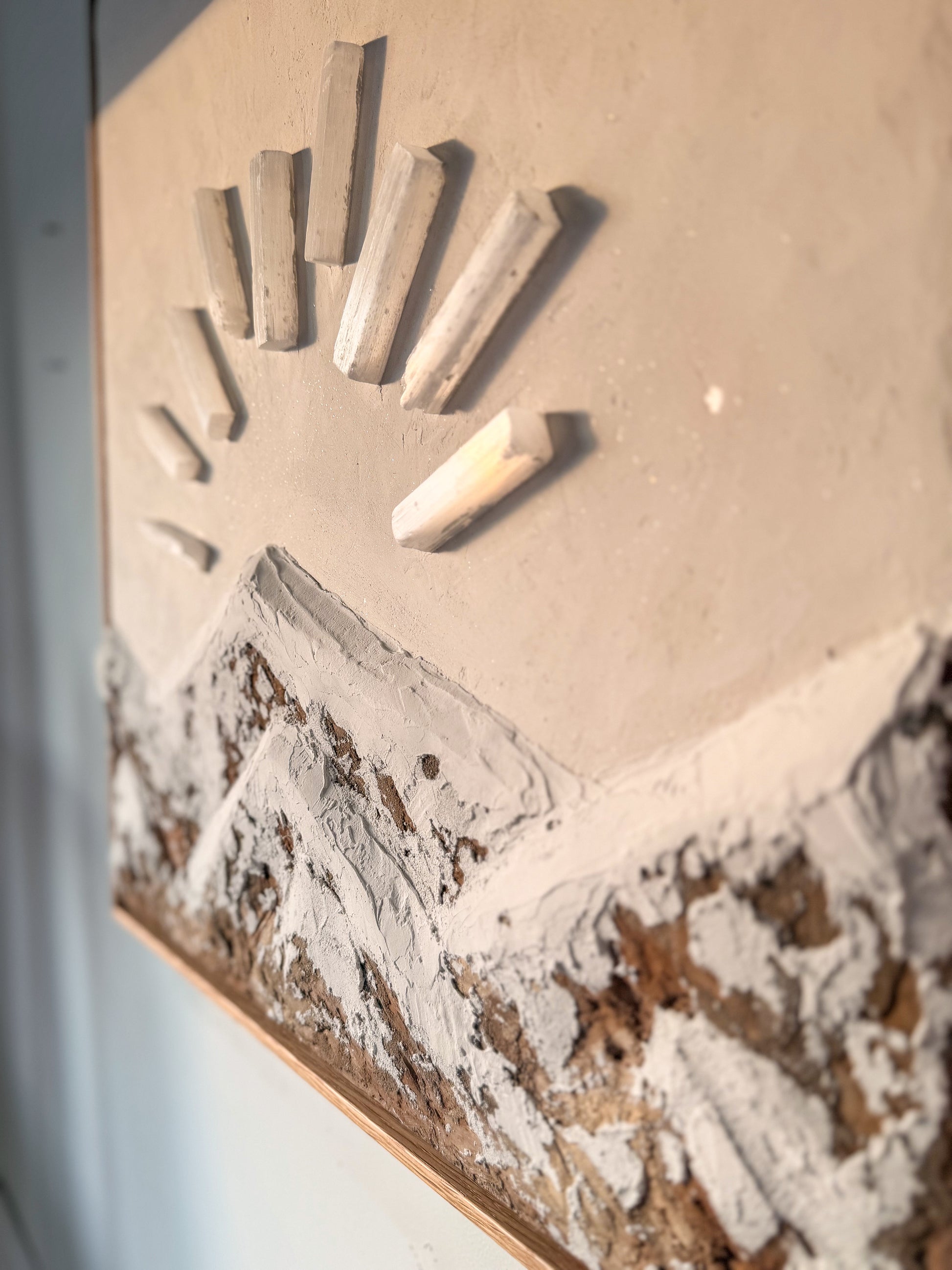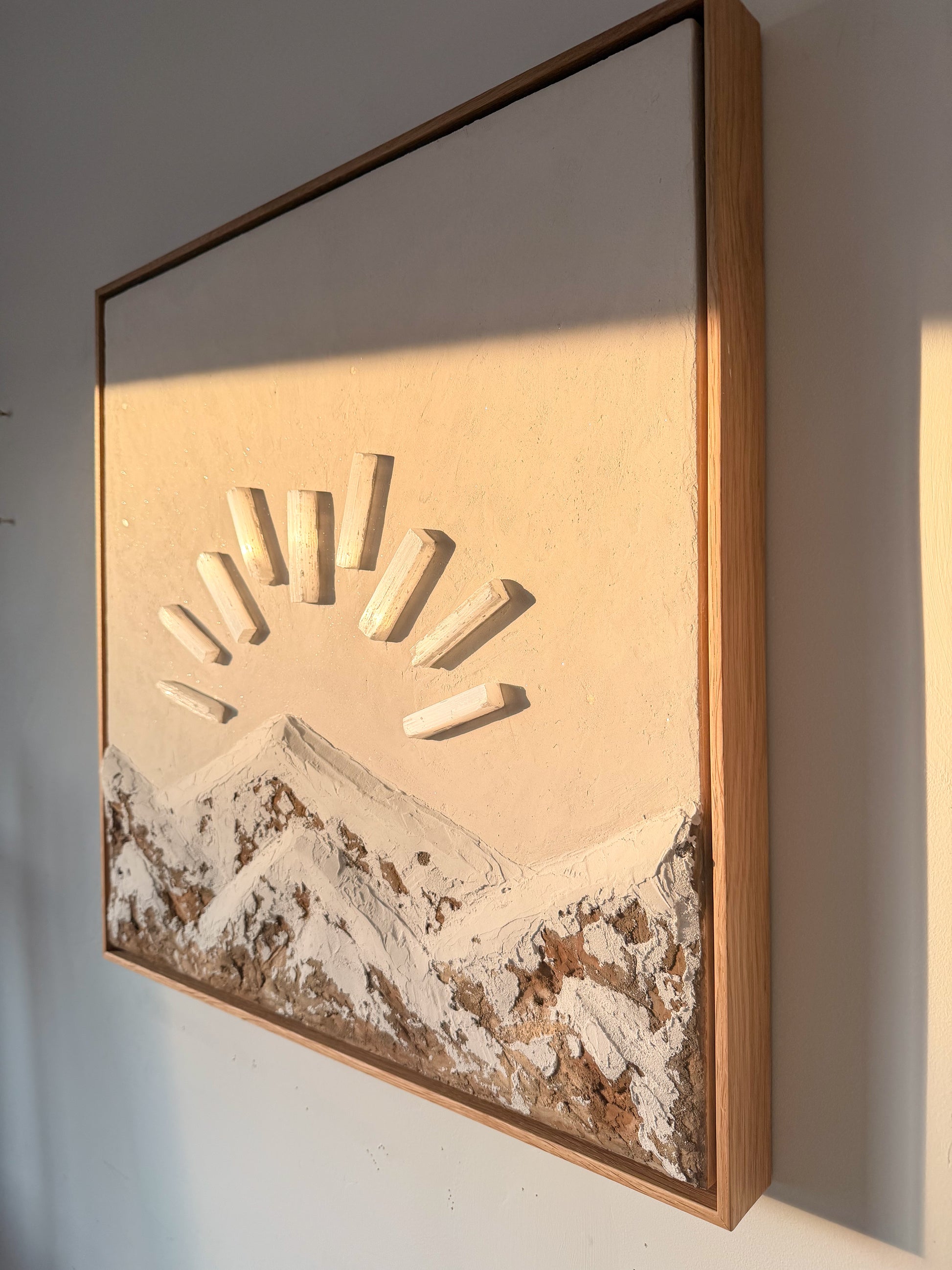 Original Contemporary 3D wall sculpture with selenite crystals.